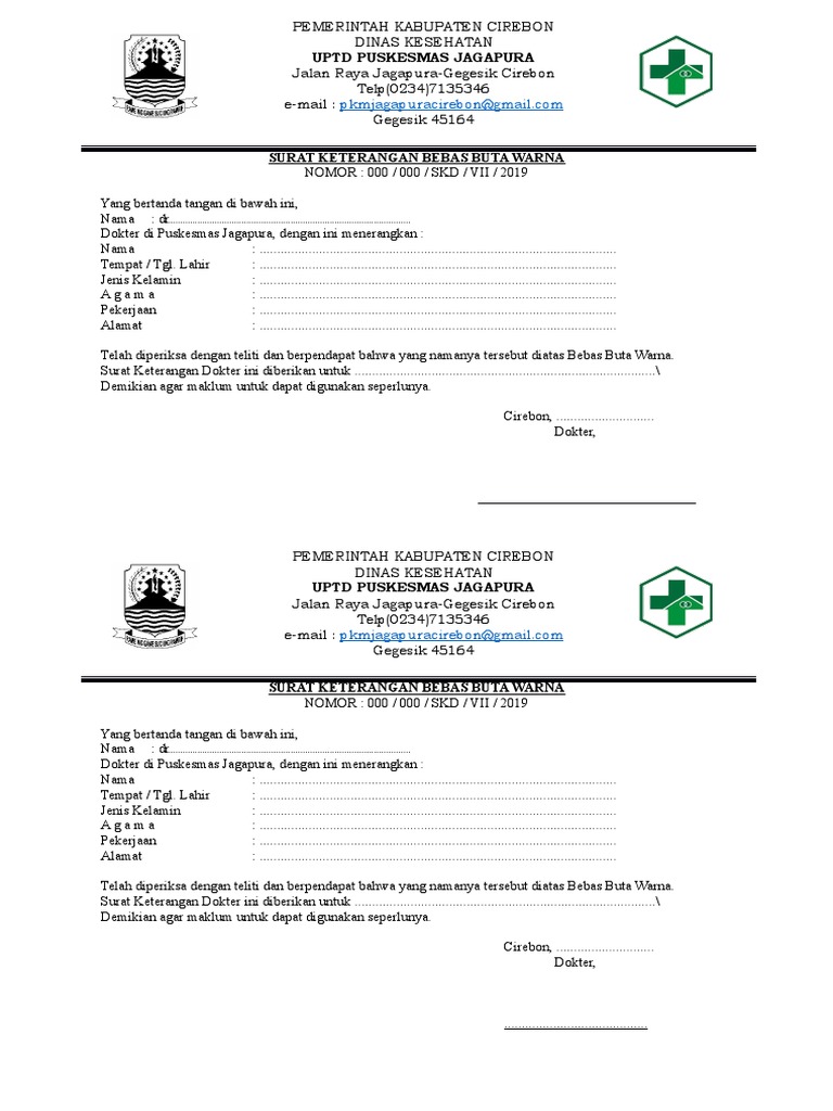 Contoh Surat Keterangan Tes Buta Warna